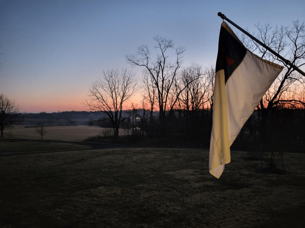 Good morning, world. Things are looking pretty good from the front porch of my farm in Virginia today. It’s cold in Virginia this morning. We had a dusting of snow overnight, and we have a wind chill factor of 11° this morning. You can hear the flags blowing from inside the farmhouse, and although it’s probably wise to take them down when the wind is blowing like this, I love to them fly all year long. After all, sometimes beauty must override practicality. It’s a new day of a New Year, and there’s no place I’d rather be than in the presence of a Mighty God as I Surrender my Life and everything in it to Him all over again. I don’t put a whole lot of emphasis on the “New Year” because I’m busy beginning something “new” in each and every new day. Though this will be a quiet semi “day off” for me, there’s no such thing as taking a “day off” when it comes to spending time with the One who gives us Life, Hope, and a Future…and He’s worthy of Celebrating EVERY DAY of every New Year. I sure never want Him to take a “day off” from me and my Life, so why would I set Him aside to take a “day off” from Him either? I’m so grateful that I don’t serve a fair-weather God, and I don’t want to be an on-again off-again Servant. Isn’t that the way you look at the Journey of Faith, too?