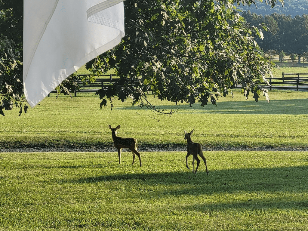 Good morning, world. Things are looking pretty good from the front porch of my farm in Virginia today. I met with the Alpha and Omega before the sun came up and I watched His Majesty unfold before my very eyes. It’s hard to fathom how anyone could fail to see the Hand of the God of all Creation if they’ve ever watched a morning unfold before their very eyes…but they do. It’s because I worship His Majesty that I see things with my Heart instead of just the human eye and I begin to sing “Majesty! Worship His Majesty” almost every time. The deer in this photo reminded me of the way so many people approach the Journey of Faith…a little timid…a little shy..and never willing to be the one to make the first move of Faith…all because they overlook His Majesty. Isn’t it just like God to thread a message in my Heart at sunrise using a simple deer?