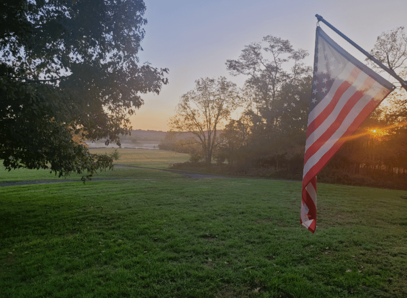 Good morning, world. Things are looking pretty good from the front porch of my farm in Virginia today. It was in the 50s at daybreak on this Sunday morning but temperatures like that would never prevent me from watching God wake up the world from the front porch. A hot cup of coffee and a warm throw is all that it took to prepare me for the “uncomfortable” this morning. I focused on the tattered Christian flag…still beautiful and still flying after all the beating it has taken to fly day after day on the front porch day and it reminded me of the Journey of Life. When we’re willing to fly Boldly and Beautifully in the name of Jesus Christ, we’ll take a pretty good beating too. I could have retired this flag before it became tattered, and I could have shielded it from the “uncomfortable” to keep it safe…but, just like me, it was designed to fly as long as possible. One day we’ll both be “retired” from flying for our Faith and we’ll both be replaced with another beautiful one to pick up where we left off. Until that time, we keep flying with everything we’ve got all in the name of Jesus. Isn’t that the way you see the Journey of Life too?