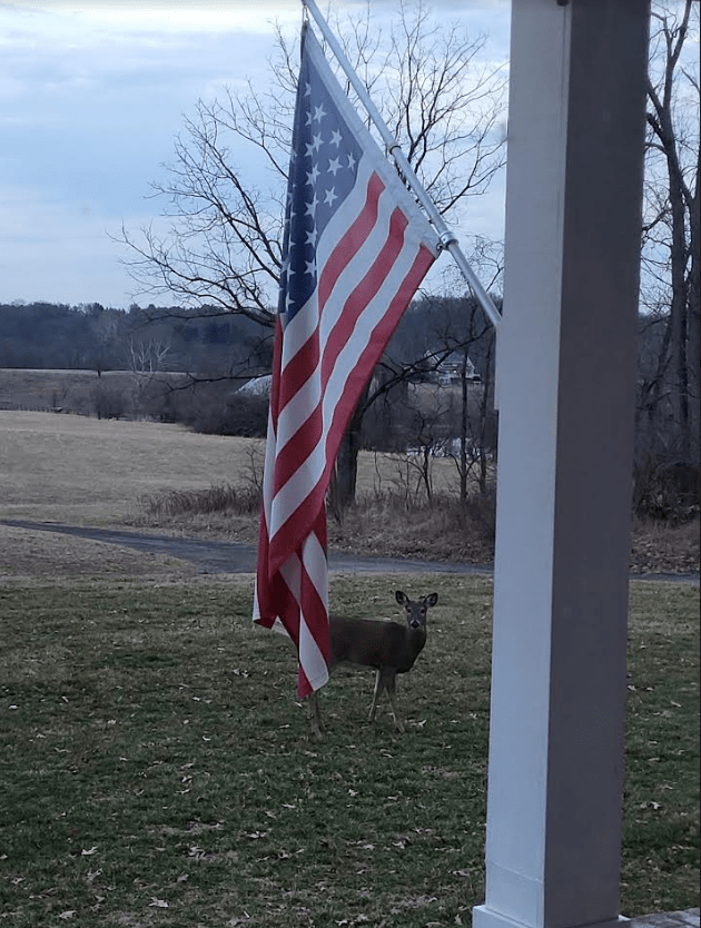 Good morning, world. Things are looking pretty good from the front porch of my farm in Virginia today. After I stepped outside onto the cold porch to see what kind of day I was being blessed, I settled down at my warm desk with the front-row view of the farm. The front lawn was filled with furry friends in all kinds of shapes and sizes, but I set my eyes on this one and we stared at each other for what seemed like the longest time. Every once in a while she would inch a little closer to the porch and we’d each get a closer look at each other. Those moments with my furry friend caused me to think about how it is when we slow down and determine to love and respect everyone (and everything) God has Created, we don’t see “threat” or “enemy” anymore, we just see the Hand of God. Isn’t it just like my God to use a stare-down with a deer to ignite a Message in my Heart?