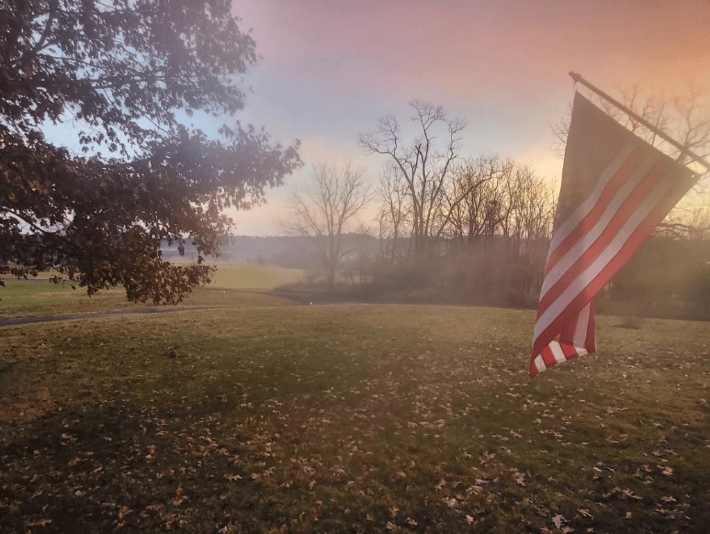 Good morning, world. Things are looking pretty good from the front porch of my farm in Virginia today. It’s that time of year when almost everything I see from the front porch is the same color. The foliage is turning brown and falling to the ground and the deer get a new gray coat color for the winter…God’s way of helping them avoid danger by blending in. Sometimes the flags are the only bright colors I see and they’re kept hanging all year because of it. As I sat there this morning considering all the things I can see throughout the winter (and all the things I can’t) I was reminded of how that’s the way it can be in the Journey of Faith too. The Goal of a Person of Faith isn’t to “blend in” but to STAND OUT through every Season of Life, and if we aren’t careful, we could eventually blend in with all the rest while we ride out the Winter Season. How can the dark world see the Bright Morning Star in us if we’re blending in with it? Don’t you want the world to see the Color of your Faith all year round too?