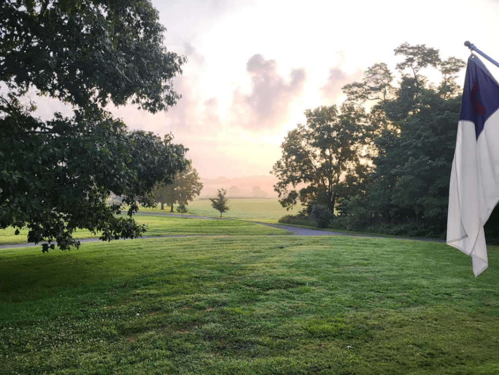 Good morning, world. Things are looking pretty good from the front porch of my farm in Virginia today. The sky is gray, the air is thick, and the fog is so heavy you could almost cut it with a knife on this August day in Virginia. When the Living God brought the light over the farm this morning, the world lit up slowly and gently…and then it just stopped. It was like a Heavenly dimmer switch being raised to just the Right Place for the New Day. This new day doesn’t look anything like yesterday, and although the deer still graze, the birds still sing, and my day will have a familiar ring to it, absolutely nothing about this New Day will be like any other Day that has ever come before. This day came, and it will go…and once it is behind me, I won’t be able to change a single thing about it. For me, each new day is a New Day in Christ, filled with Opportunities to be a Part of Miraculous things in His name. Just knowing that this New Day will never be repeated again makes me savor it that much more. Isn’t that the way you face the New Day in your Journey of Faith, too?
